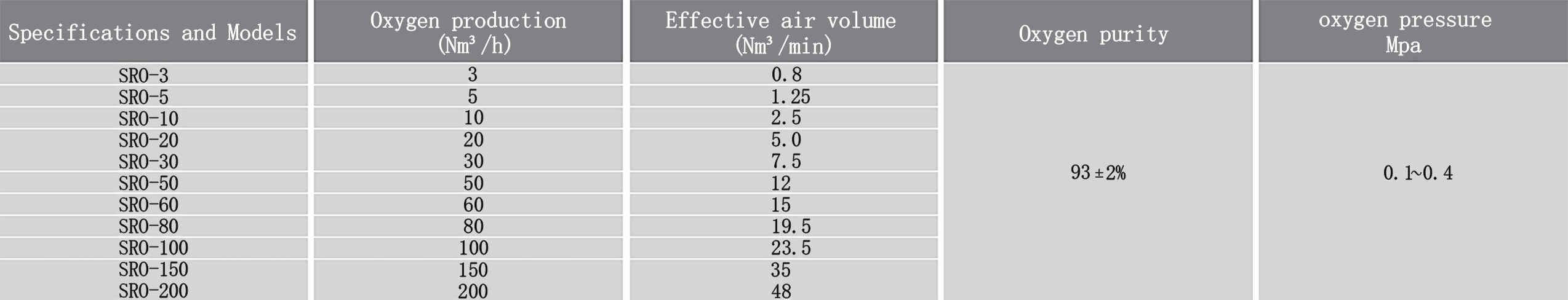 氧氣產量:3~ 200Nm/h 氧氣純度:93 + 2 % (標準型為93 % )