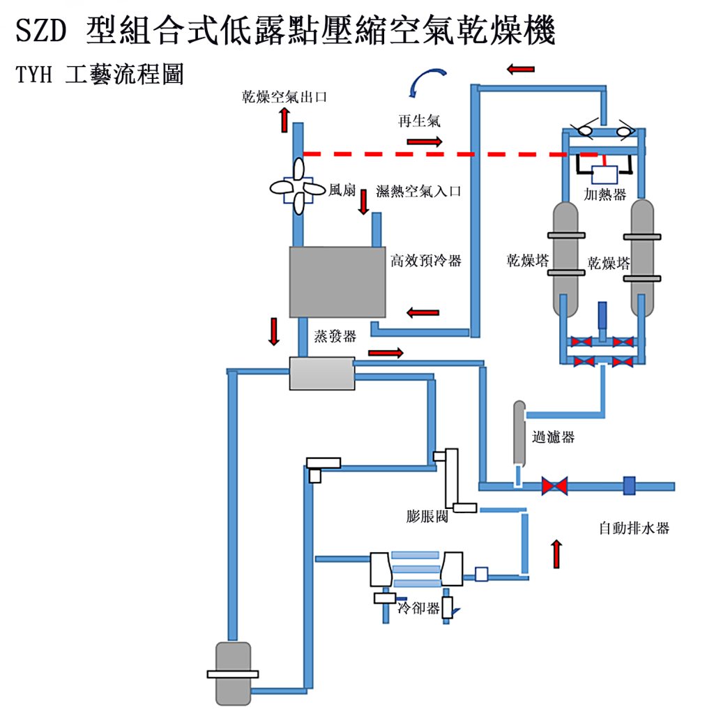 組合式乾燥機係一種將「冷凍式乾燥機」同「微熱再生吸附式乾燥機」有機結合嘅高效設備。